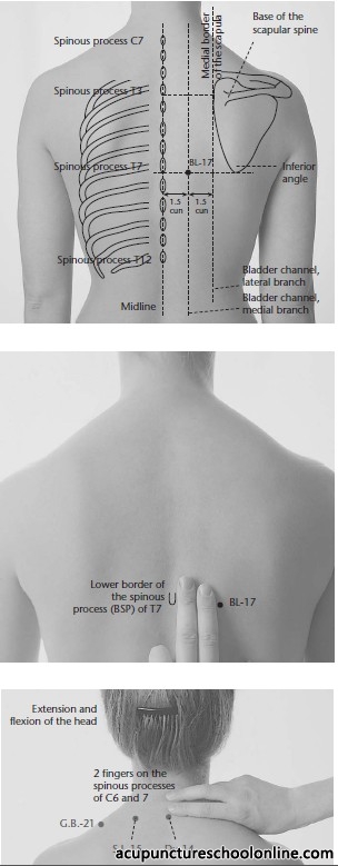 1.5 cun lateral to the lower border of the spinous process of the seventh thoracic vertebra (T7).