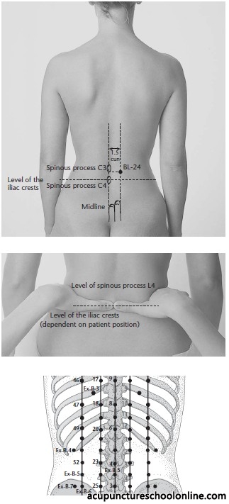 1.5 cun lateral to the lower border of the spinous process of the thrid lumbar vertebra (L3).