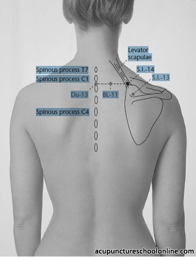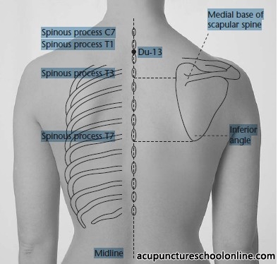 In Tung Lineage Acupuncture the Common Cold Three (Gan Mao San) are located at Du-13 and bilateral at Bl-42. They are pricked to bleed in instances of the common cold due to external invasion and contraction of summerheat (McCann, 2014, Pricking the Vessels).