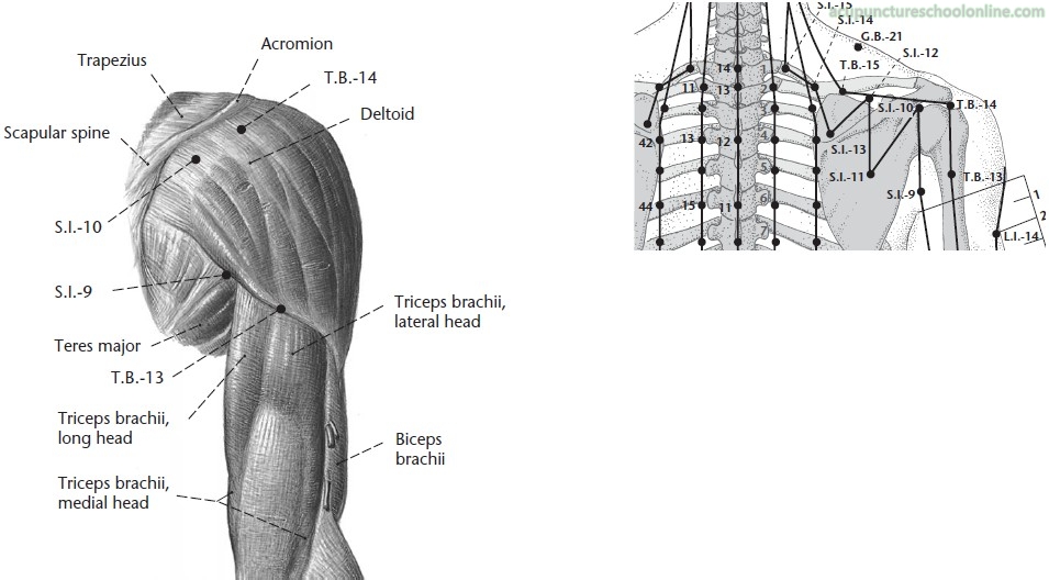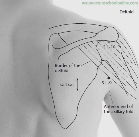 Melzack (1977) correlates this point to the teres minor trigger point but it is far better suited to Naoshu SI-10