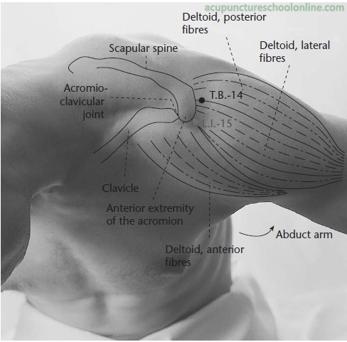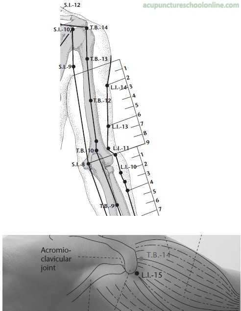 "Locate it with the" (patient’s) arm raised obliquely. It is needled to a depth of seven fen and moxaed with three cones" (Huangfu Mi 皇甫謐, 3rd Century, Zhenjiu Jiayi Jing 針灸甲乙經).