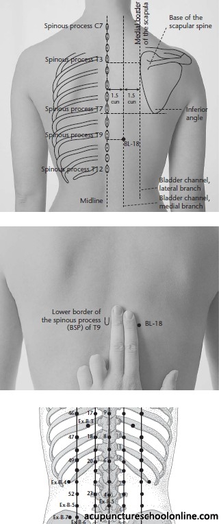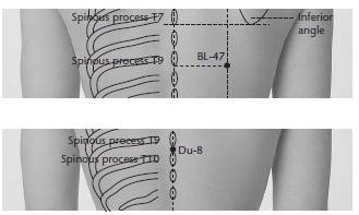 1.5 cun lateral to the lower border of the spinous process of the ninth thoracic vertebra (T9).