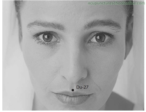 On the midline, at the junction of the margin of the upper lip and the philtrum.