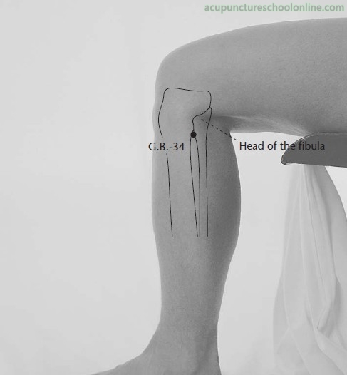 Below the lateral aspect of the knee, in the tender depression approximately 1 cun anterior and inferior to the end of the fibula.