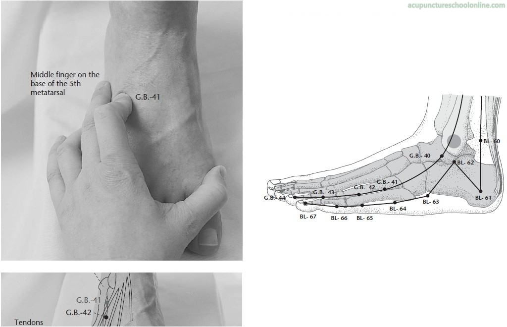 Yuen (2005, The Eight Extraordinary Vessels) notes that this point, along with Houxi SI-3, is a Shu-Stream point instead of an Luo point like all the other extraordinary vessels because Dai mai pathology is concerned with releasing accumulation that we have stored internally back out into the world, while the other extraordinary vessels are about absorbing from the outside world.