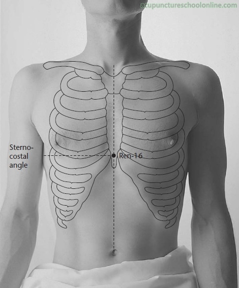 "Locate it with (the patient) lying supine. It is needled to a depth of three fen and moxaed with five cones" (Huangfu Mi 皇甫謐, 3rd Century, Zhenjiu Jiayi Jing 針灸甲乙經).