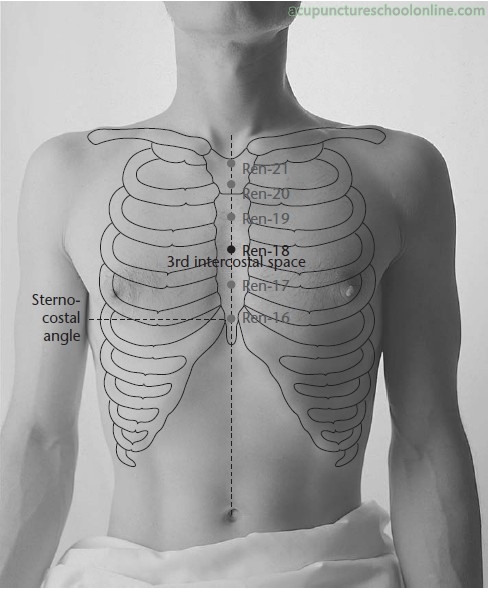In Tung's acupuncture this point is called Jin Jiao and forms one of the Metal Five (Jin Wu), a series of five points that start at the upper border of the manubrium and descend at 1 cun intervals, approximately overlapping with Ren-18 to Ren-22. They are all indicated for difficultly breathing as well as their traditional indications for each point (McCann, 2014, Pricking the Vessels).