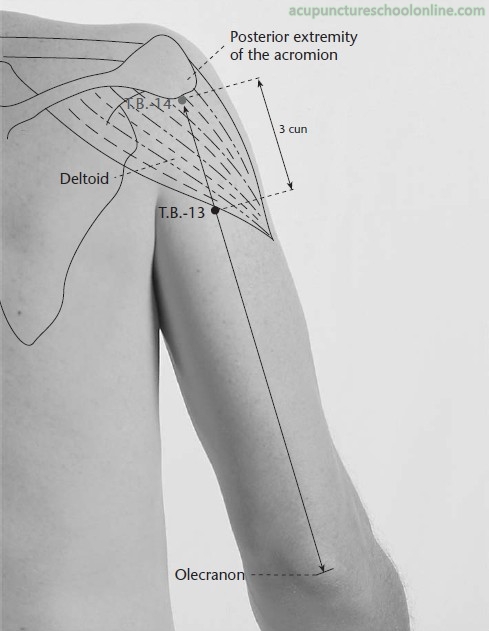 Deltoid trigger point may be slightly superior on the body of the muscle along with several other trigger points between this point and Jianneiling. Triceps point may be slightly lower