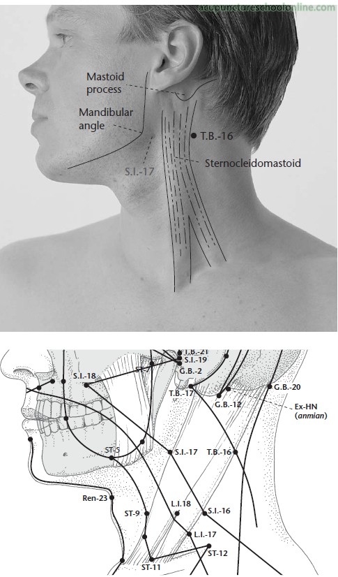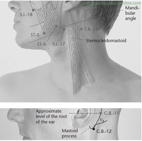 On the posterior border of the sternocleidomastoid muscle, approximately 1 cun inferior to Wangu GB-12, on a line drawn between Tianzhu BL-10 and Tianrong SI-17.