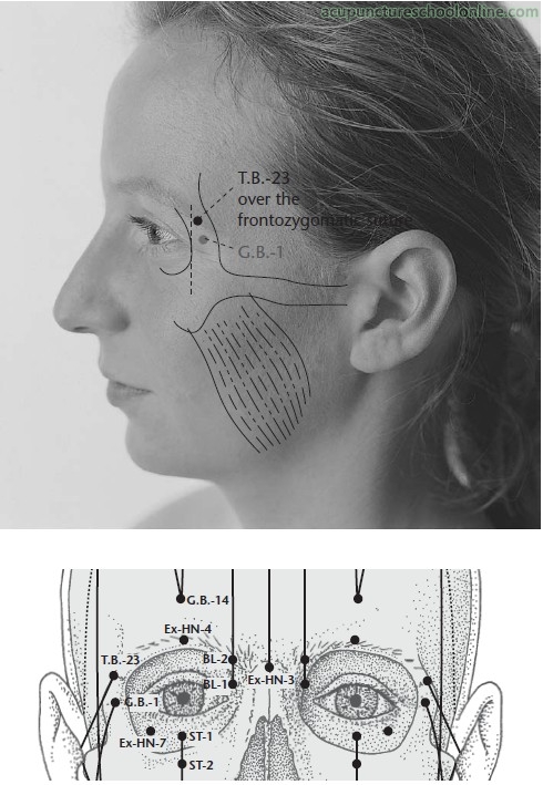 There are points along the Gall Bladder channel that affect associated Zangfu, Primary Channels and Extraordinary Vessels that I refer to as "head-Shu" points. This point, as the "silken bamboo hollow" at the lateral end of the eyebrow may have equally meant Taiyang, making this point an obvious candidate for a head-Shu for the Chong Mai.
