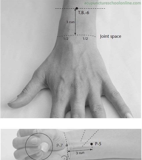 Zhigou SJ-6 with Xuanzhong GB-39 (Deadman, Al-Khafaji and Baker, 2001, A Manual of Acupuncture).