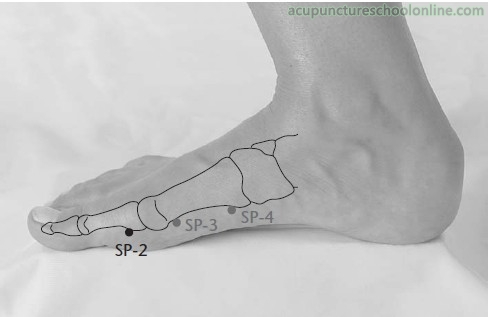 "The foot Taiyin is to be pierced 3 fen deep and remain inserted for four exhalations" (Ling Shu 靈樞 ch. 12).
