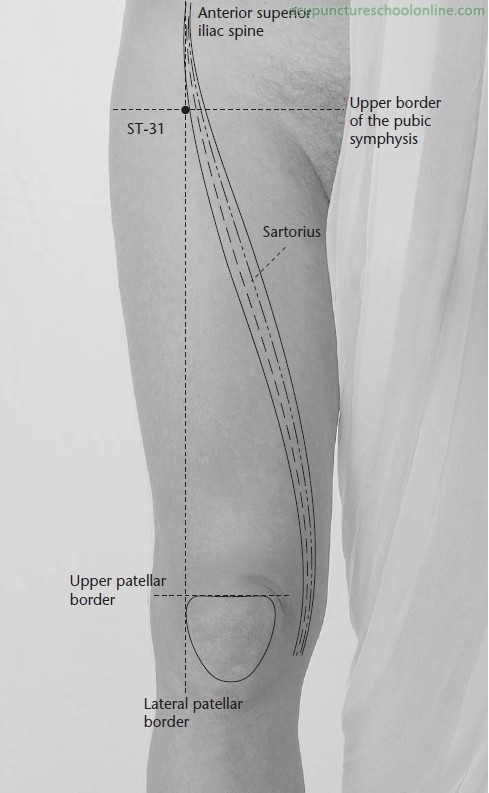 Sartorius trigger point would be slightly medial, on the belly of the muscle