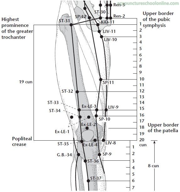 Striking this point drains the Qi to the legs causing the recipient to have to sit down or fall down! It can be used as an excellent set up point for a physical leg strike, making bones break more easily once this point has been struck first (Montaigue, Dim Mak Locations, Taijiworld.com).